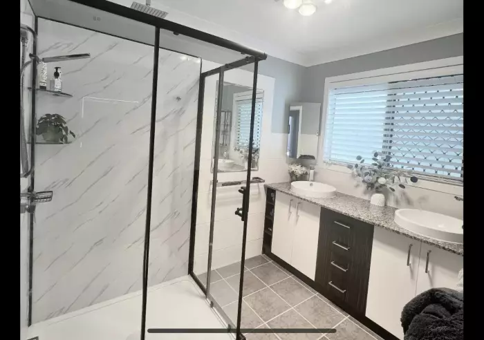 Down the hall, you’ll find three bedrooms, each complete with built-in robes. The generously sized main bedroom offers extra comfort with its own air conditioning, an adjoining study, and direct access to a second deck. Fully enclosed with mesh, this spacious deck is ideal for entertaining or relaxing in comfort all year round.
