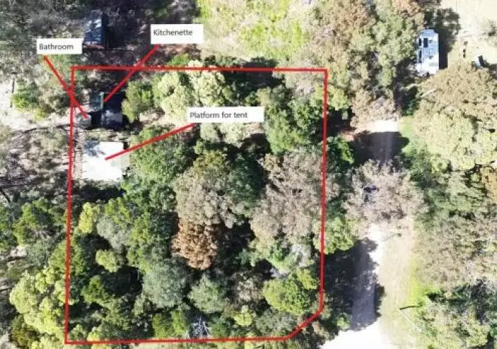 The site currently includes a camp-style setup, perfect for weekend stays while you plan your build. Features include: