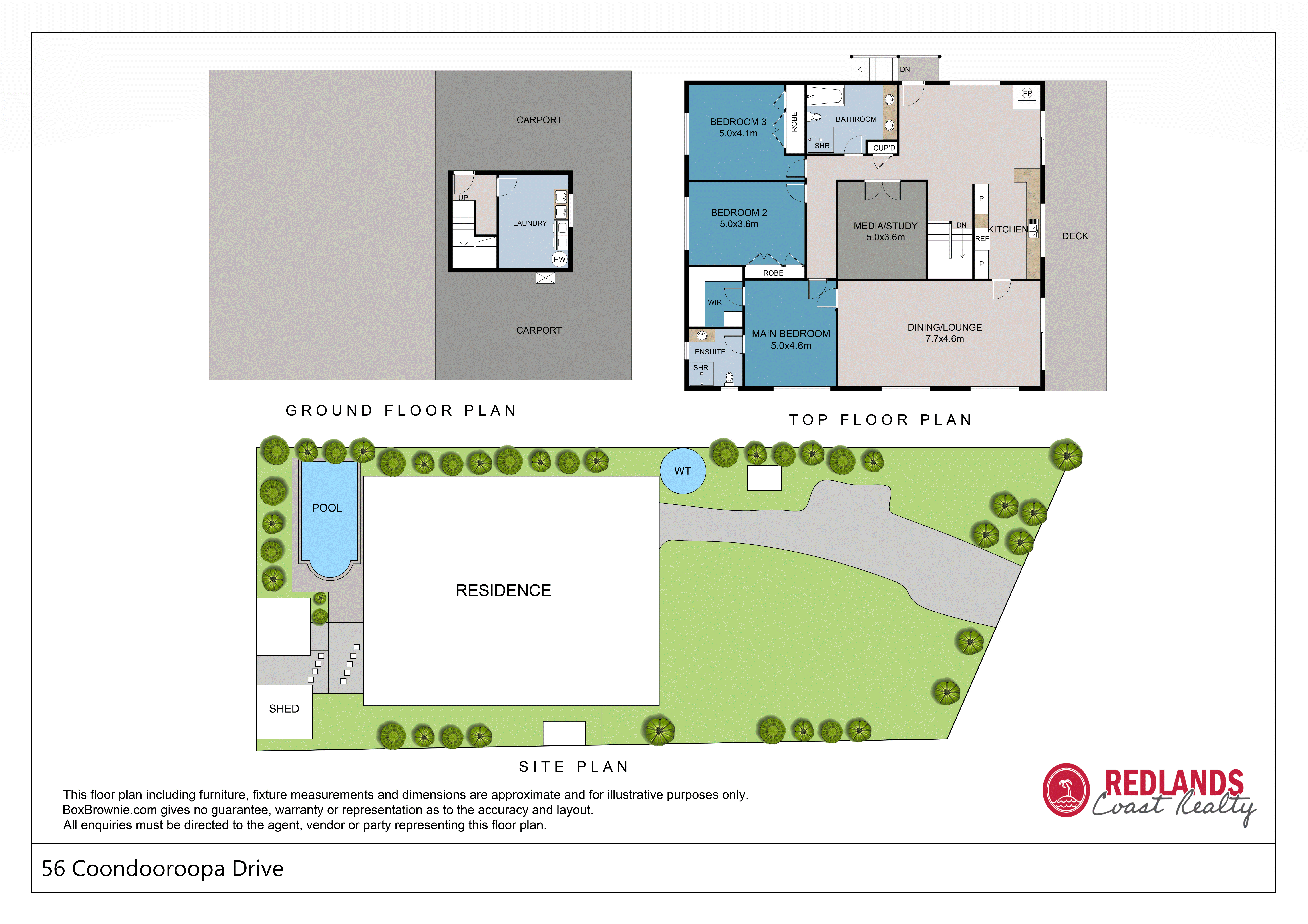 - Multiple indoor/outdoor living areas including a large media room — ideal as a home office, rumpus or fourth bedroom