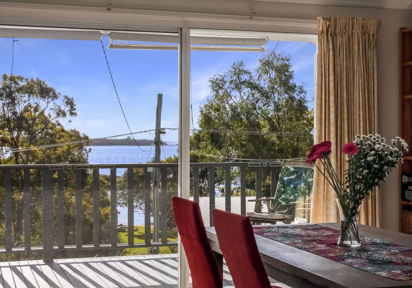 The thoughtful layout positions living, dining and kitchen areas toward the water and greenery, with bedrooms quietly tucked at the back. Even everyday moments feel special with bay views from the dining room and kitchen sink.
