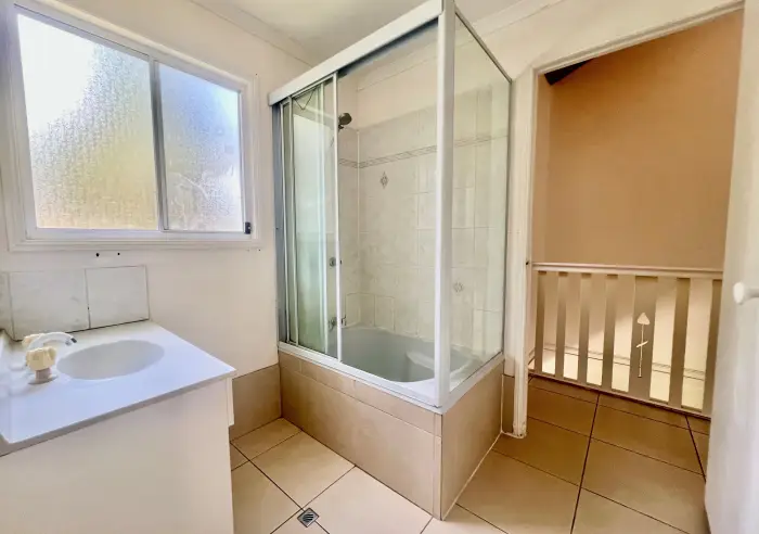 Upstairs, you’ll quickly fall in love with the high ceilings, generous open-plan living, and large windows that fill the home with natural light. The front deck and rear sunroom extend the space, creating the perfect flow for relaxed and practical living. The upper level also features two generous bedrooms and a central bathroom.