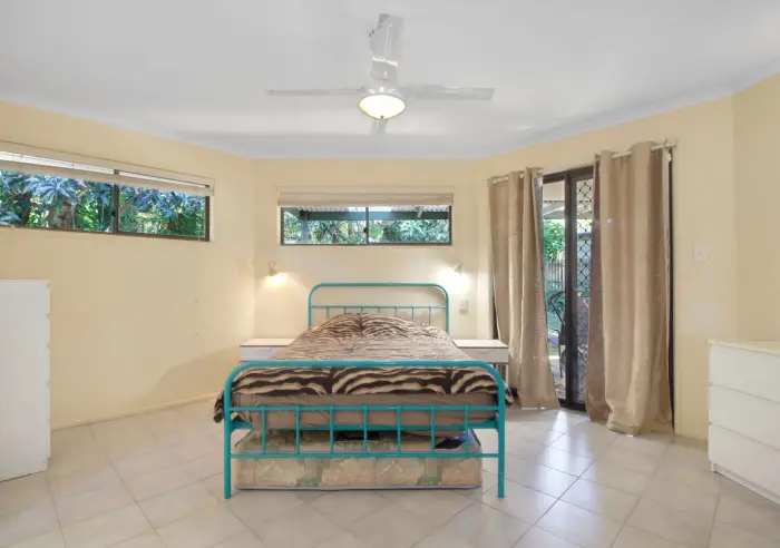 The bedroom is generously sized and includes its own ensuite, while ceiling fans throughout add to the everyday comfort. Outside, established gardens provide a pleasant outlook and space to enjoy without excessive upkeep.
