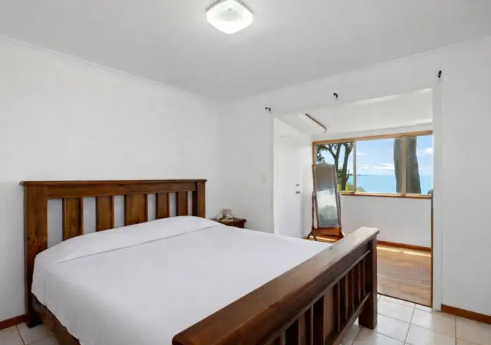 Upstairs is where the magic truly unfolds. The open plan lounge, kitchen and dining area takes full advantage of the sweeping water views, creating a light-filled space perfect for entertaining or simply relaxing. Two bedrooms are located on this level, including a main bedroom with its own private sunroom and enclosed deck area. Fully tiled throughout for easy-care coastal living, the home is complemented by solar panels to help keep energy costs down.