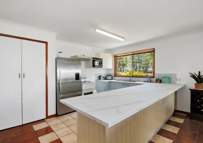 This solid two-storey home has been thoughtfully designed to capture the stunning bay views from both levels, with plenty of windows throughout allowing the beautiful bay breezes to flow naturally through the home. Downstairs welcomes you with a practical mud room and dedicated office space overlooking the water – the perfect spot to work while enjoying the ever-changing outlook. Flowing through is the laundry area, separate toilet and shower, which connects to the main bathroom featuring a shower over bath.
