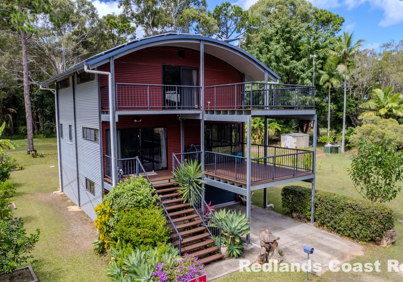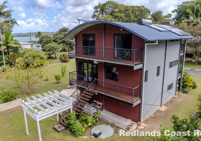 Positioned in a peaceful pocket of Lamb Island, this sturdy steel-frame home enjoys a lovely outlook to conservation land at the rear and ocean views from the front verandahs.