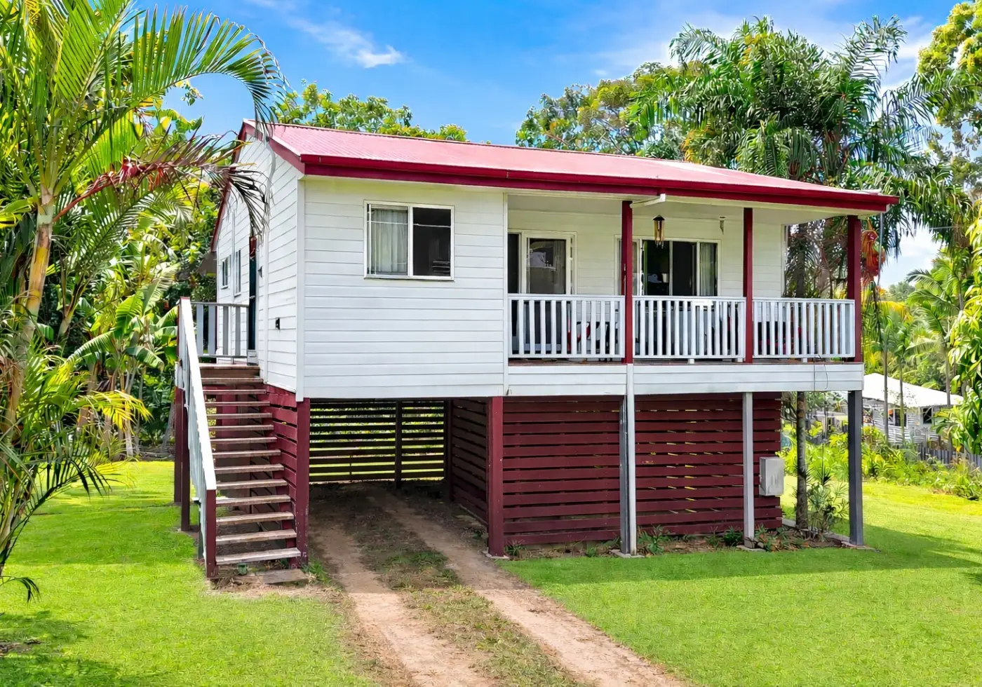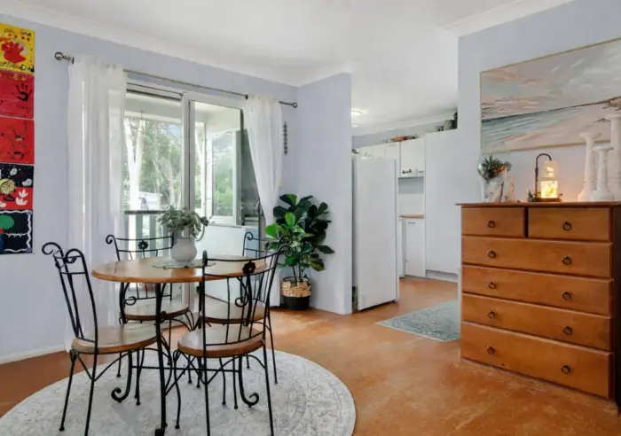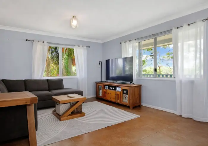 Upon entry, you’re welcomed into a separate kitchen area that also incorporates a practical laundry space. The home then opens into a light-filled open-plan lounge and dining area, flowing out to a front deck — the perfect spot to sit back and capture the beautiful island breezes.