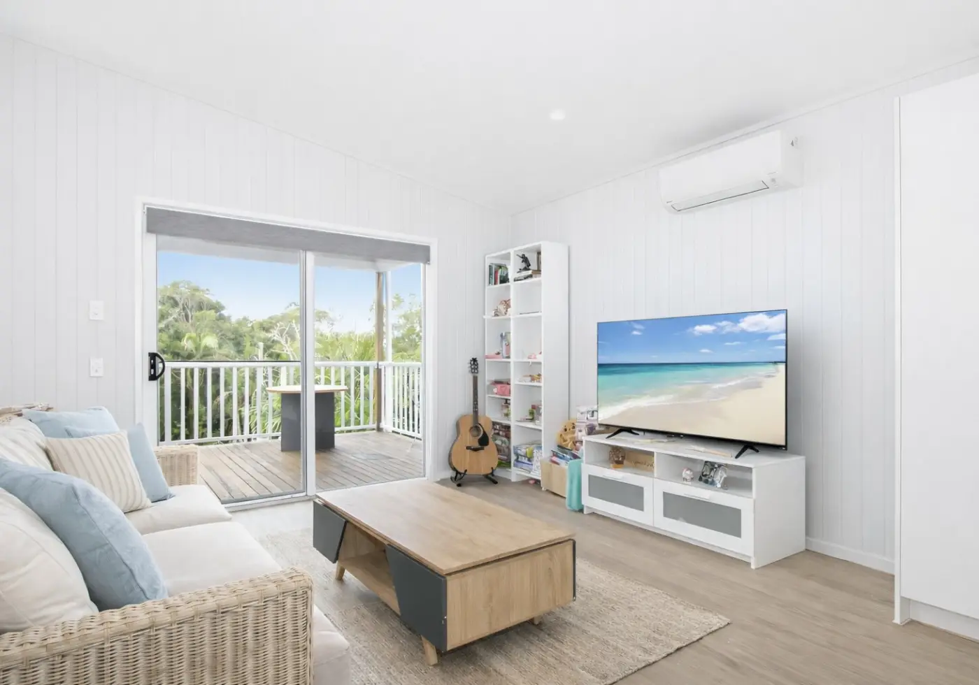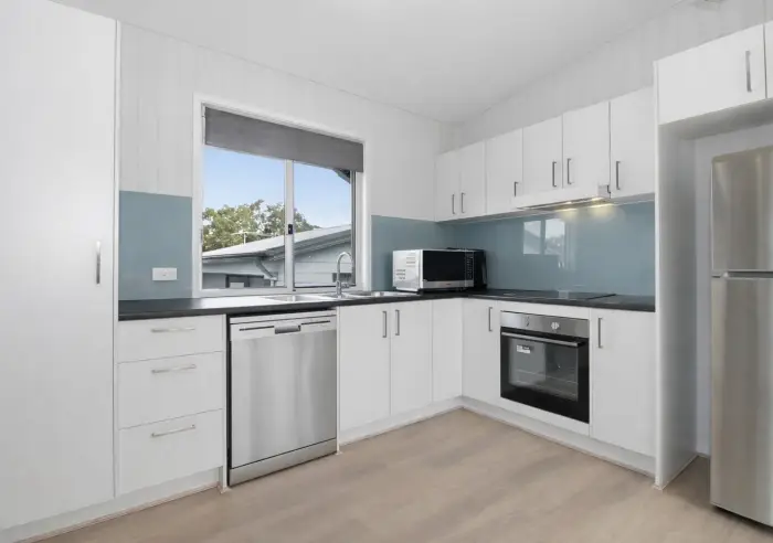 The kitchen is beautifully finished with a striking glass splashback, electric cooking, dishwasher and ample storage. Flowing from here, the open living is bright and comfortable, complete with air-conditioning and extending onto the front deck -  the perfect place to relax and enjoy the island breezes. The home is also ramp accessible, making everyday living easy and practical.