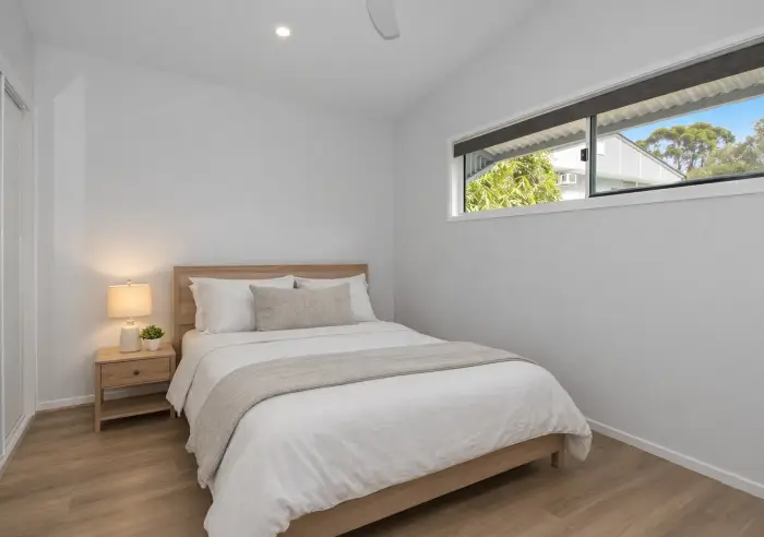 This near-new single bedroom home offers comfortable and practical living. The bedroom is generously sized and includes a built-in wardrobe and air-conditioning, while the bathroom is spacious and well appointed.