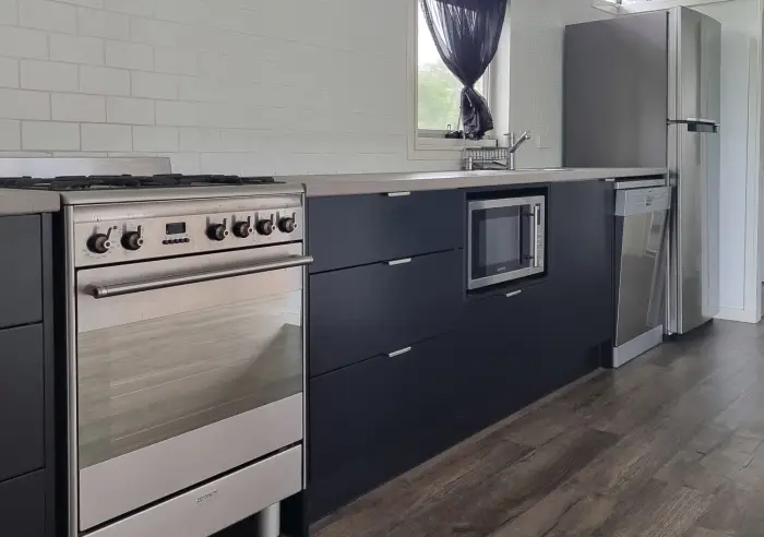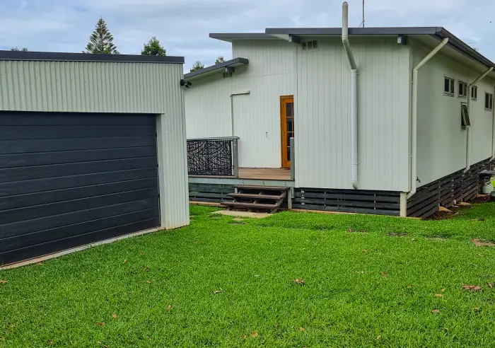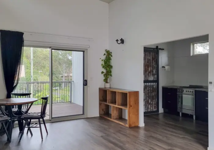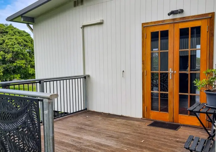 Inside, the open plan layout is light and airy with high ceilings and louvre windows that let the breezes flow through. The kitchen is beautifully finished with quality appliances including a dishwasher, along with stylish fittings and plenty of storage. Barn doors add a bit of character, and air conditioning keeps things comfortable year-round.